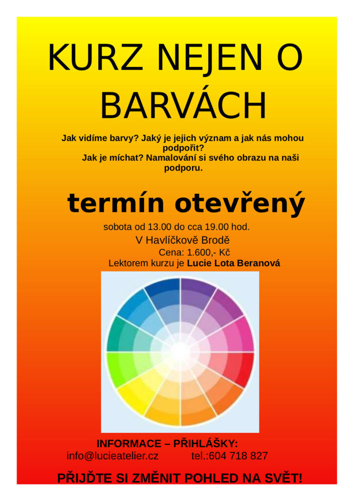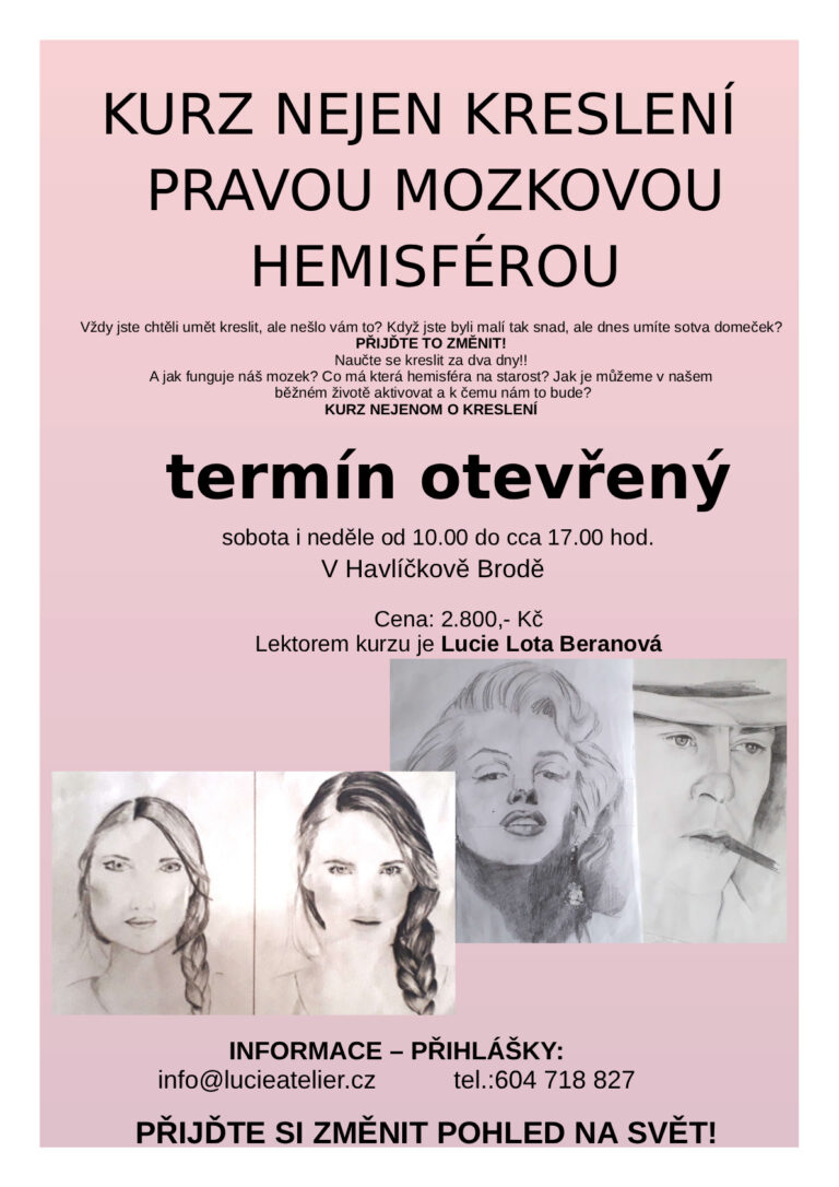 TERMÍN OTEVŘENÝ celodenní kurz od 11:00 do cca 19:00 hod V Havlíčkově Brodě v LucieAteliér Beckovského 2045, HB