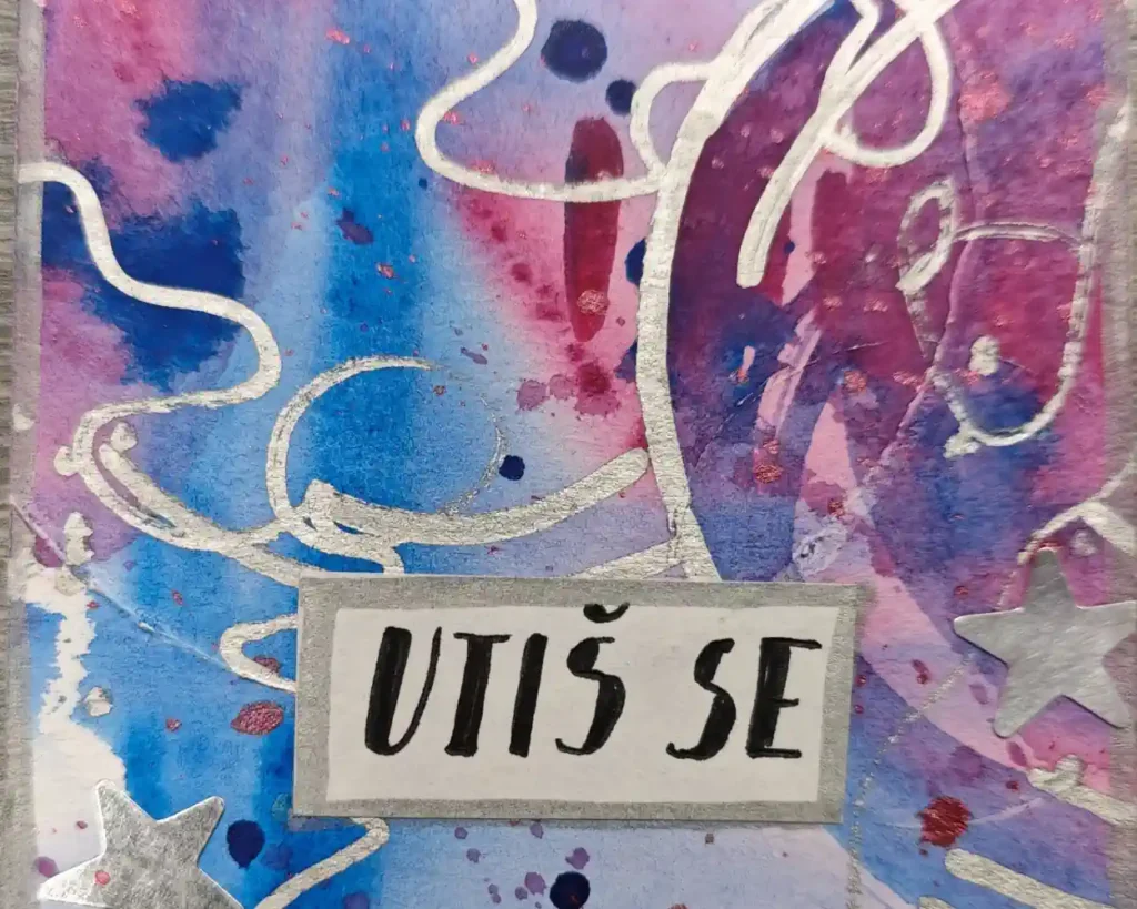 Pojďme se naladit na sebe a nechat vznikat postupně své dílo– od stínů ke světlu, za pomoci barev, razítek, koláže a možná i špetky kouzelného prachu.